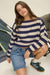 The Bateau Sweater is a boat neck cropped sweater featuring oversized stripes and a nautical feel.