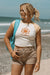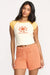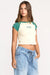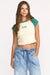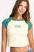 Soft, sun-washed cotton ribbing hugs just right in the Beach Club Babe Short Sleeve T-Shirt. The fitted raglan cut and crew neck pair with contrast sleeves and bold front screen print for instant laid-back polish.