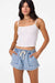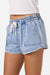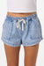 Casual woven short that has a lightweight cotton twill fabric design, solid color wash, raw edge hem detail.