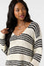 Classic stripes and cozy vibes. Stay warm in this v-neck sweater that features a drop shoulder design and hem slit detail.