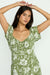 • Sweetheart neckline, button detail at front bust, short sleeve, smocking at back bodice