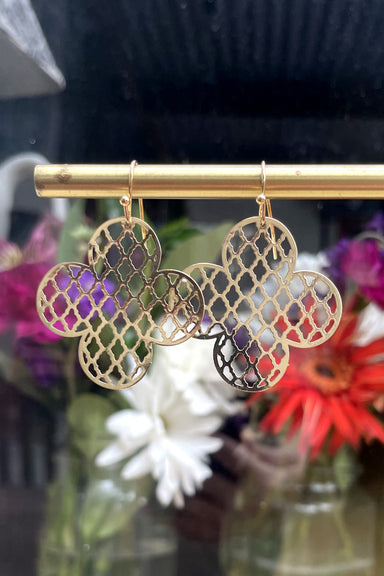 $20.00| /hammered quatrefoil earrings lightweight 18k gold dipped brass approx 2.5"