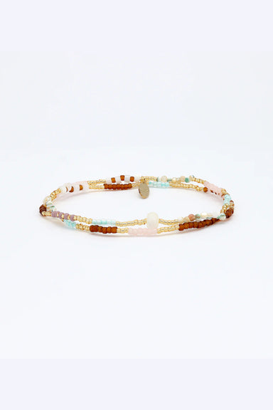Inspired by sun-filled days, the Surya Bracelet. Named after the Indonesian word for sun, shines in tones of gold, soft pink, and turquoise, dotted...