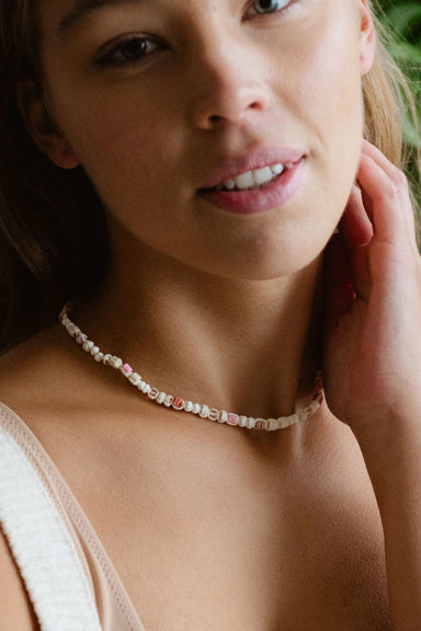 A simple and dainty beaded necklace in an array of colors to choose from.
