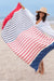 Stars and stripes design, made from Turkish organic cotton for a softer hand feel and a better sustainable product, single weave jacquard, twisted tassel fringe and sand resistant.