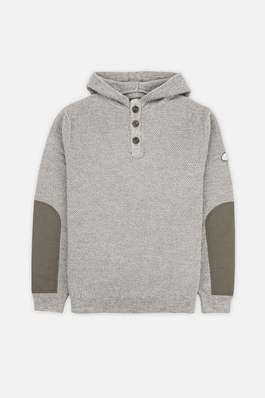 Fabric Content: 100% Cotton Details: •Durable Nylon Henley placket and sleeve patches •Horn Buttons •Henley Hoodie •Woven Patch
