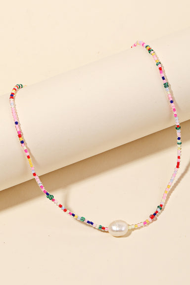 bead and pearl necklace approx 16" length with 2" extension 80% Glass 10% Metal 10% Freshwater pearl