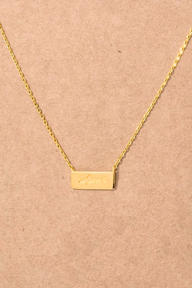 small, shark plate necklace dipped brass approx 16" chain