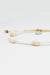 - Made with natural dainty seashells, white frosted glass seed beads and our durable wax polyester cord.