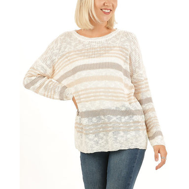 pullover sweater lightweight feel knit with striped detail crew neckline 60% cotton, 40% acrylic