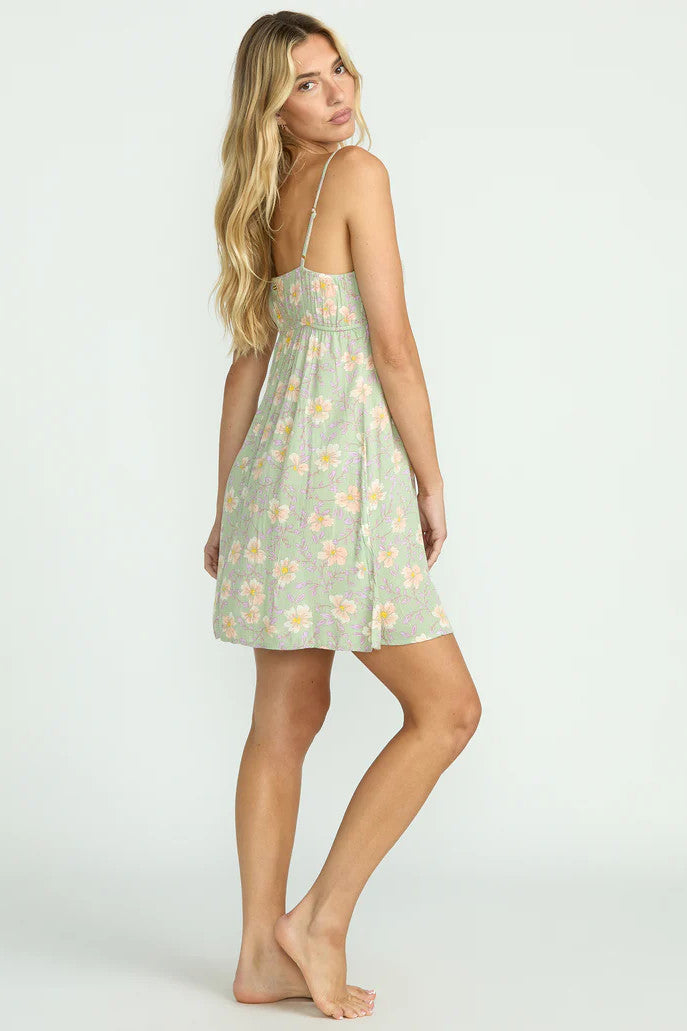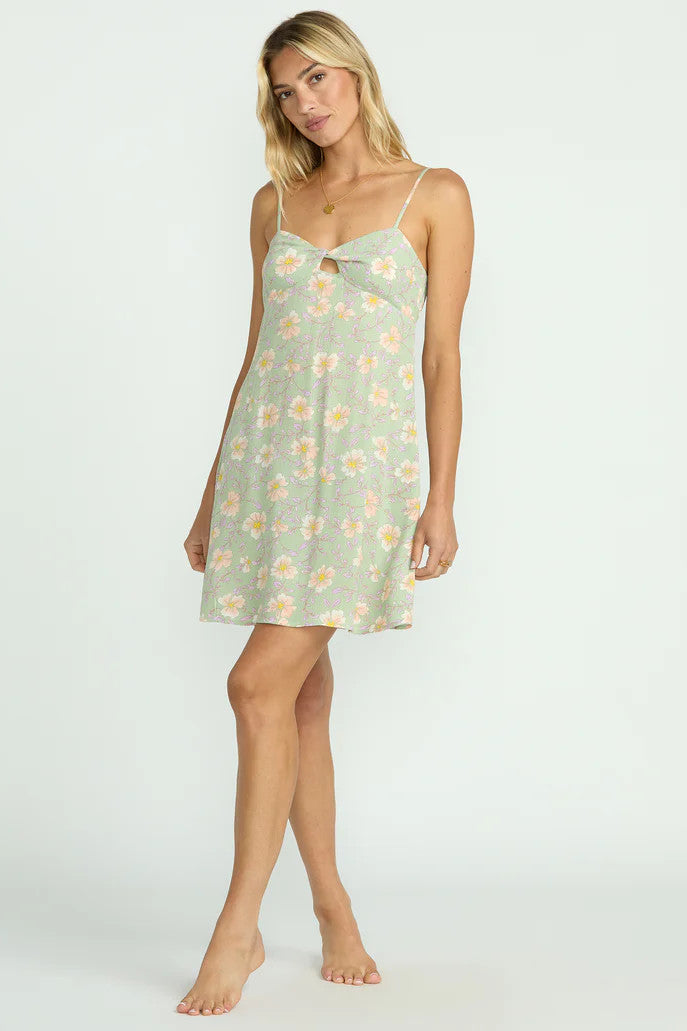 Bring sunset style to your wardrobe with this crinkle viscose mini dress, featuring a fitted twist-detail bodice and flowy skirt.