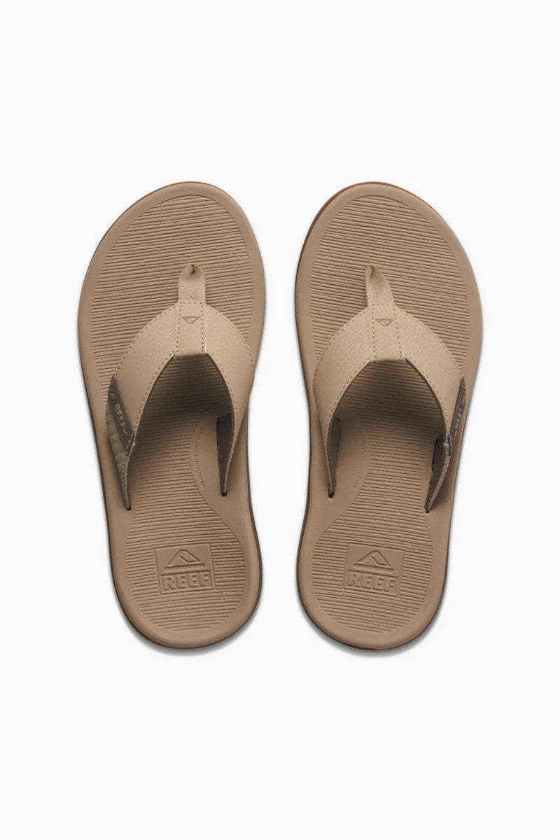 A favorite REEF sandal, the Santa Ana makes you feel good just saying its name. And it looks even better - not the palm frond-inspired side wall. Right? But most of all, slip into it and feel the cushiony softness with high arch support, a padded vegan leather strap, and bamboo-inspired texture under foot for a no-slip grip. You get all the feels with this water-friendly Santa Ana.