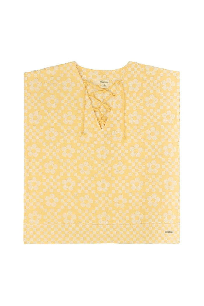 Cover up in style with this women's poncho! This floral checker design features a 2-ply blend of 100% Turkish Organic Cotton so you can relax or play in comfort. The combination of a raised and half terry creates a plush raised pile that's soft to the touch. Features a drawstring placket detail for added flair.