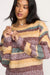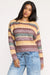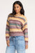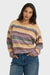 Our relaxed-fit sweater rocks a space dye stripe pattern that catches every eye in the room. The wide neckline and acrylic knit keep you cozy while a metal plate detail adds the perfect finishing touch.